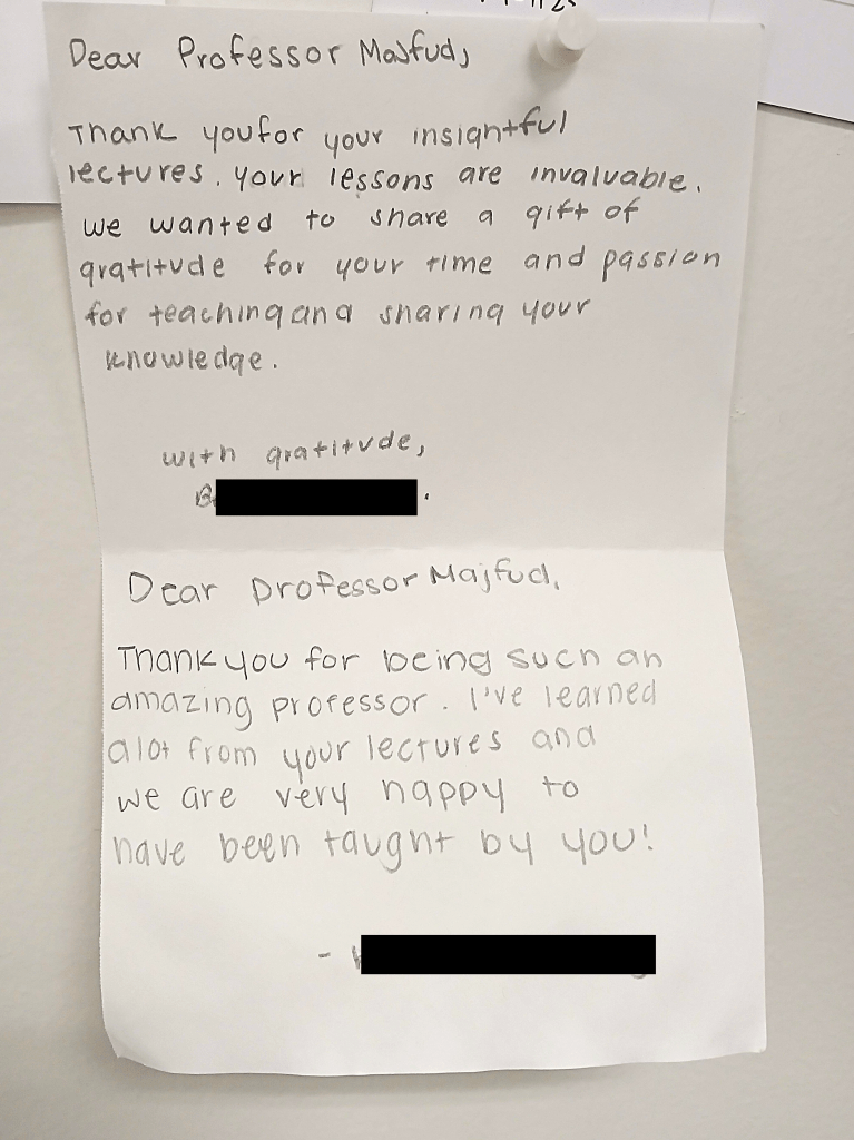También ayer recibí otra carta (doble) de fin de semestre de dos estudiantes de International Studies, una de esas que, cada tanto, te dan una alegría como para no perder las esperanzas.