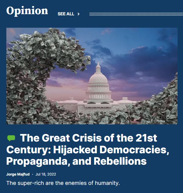 The main drug of the elites is money and power. They always need more to maintain a minimum of satisfaction, but they know that this situation, both nationally and internationally, is not sustainable. On a national level, it’s the perfect formula for a bloody rebellion. On an international level, it means the collapse of a dictatorial power that in the 19th century was called “white democracy.”